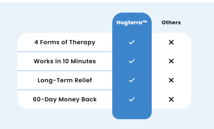 The Hugterra Massager uses a unique combination of technologies to gently stretch and decompress the cervical spine, releasing painful, trapped nerves and almost instantly alleviating the pain.