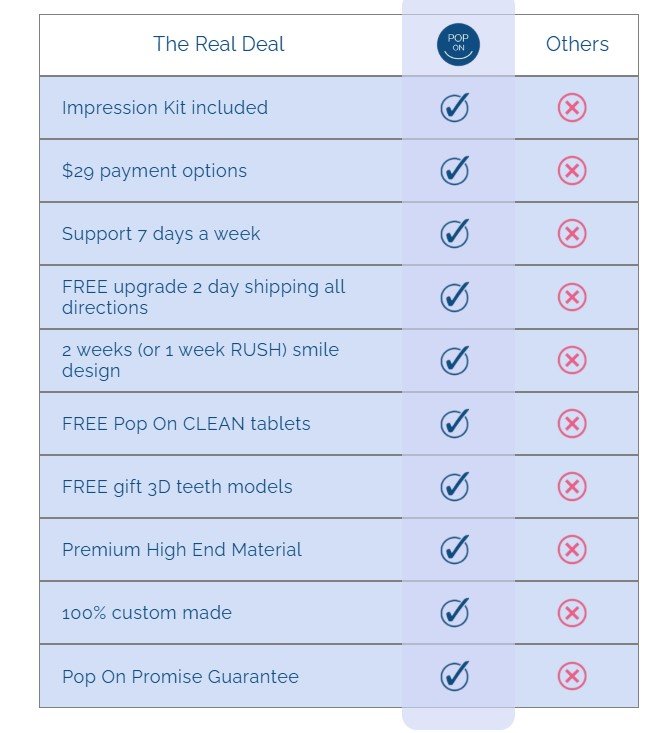 Pop On Smile are 100% custom-made from impression molds you make at home. They’re made by master technicians with our proprietary design process that 3D blends digital design and hand craftsmanship.
