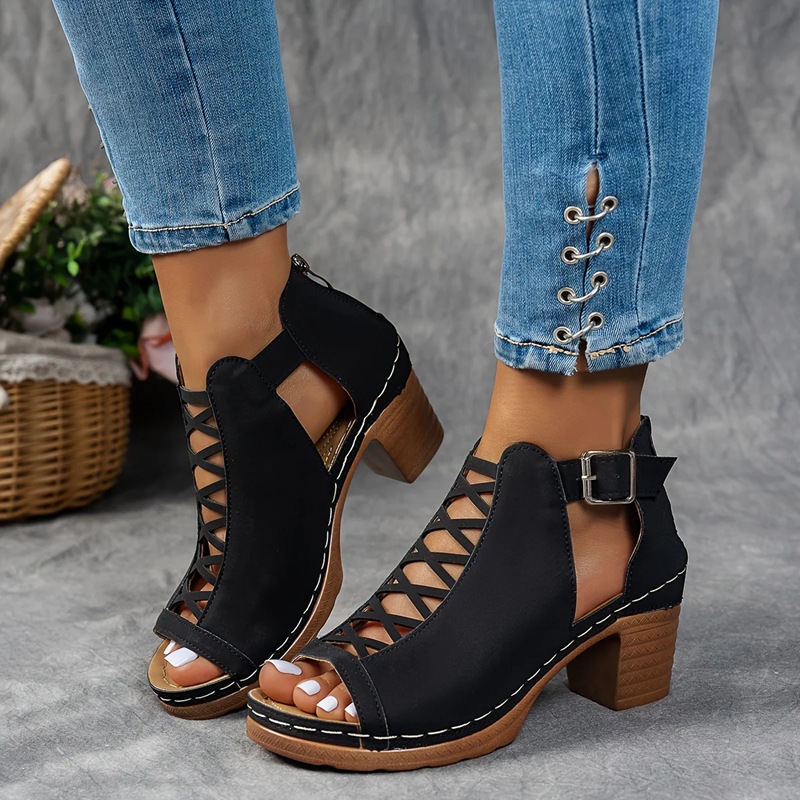 Step up your look with the Nessa™ Sandals—featuring a stylish lattice front, peep toe, and mid-height block heel for stable elegance. These sandals are ideal for pairing with jeans, dresses, or anything in between—blending comfort, confidence, and a standout silhouette.